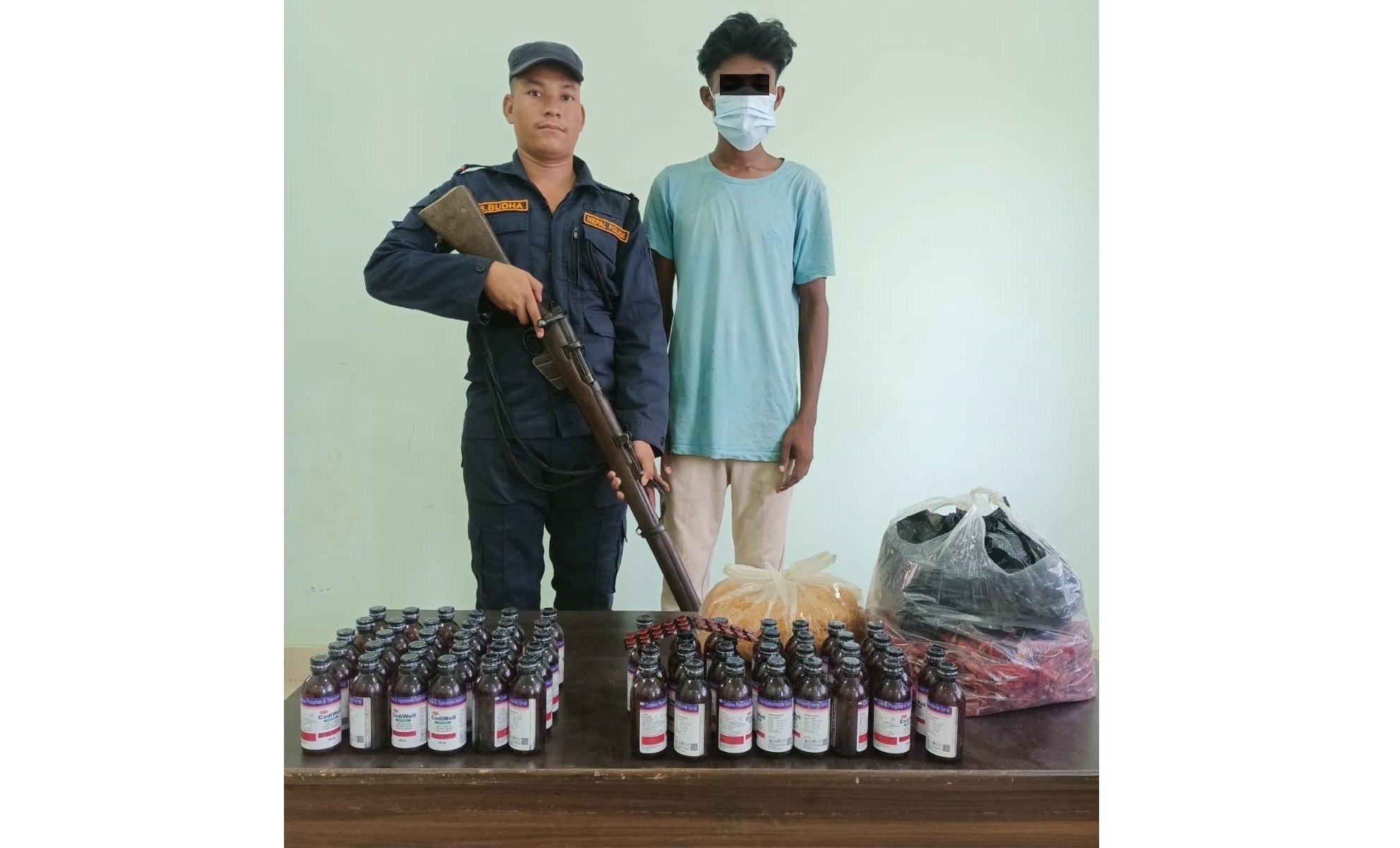 प्रहरीले उनको साथबाट नीट्राभेट टेन ३० थान र कोडिवेल ६० बोतल बरामद गरेको छ। पक्राउ परेका उनलाई जिल्ला प्रहरी कार्यालय सिरहामा राखेर थप अनुसन्धान गरिररहेको जिल्ला प्रहरी कार्यालय सिरहाका सूचना अधिकारी डीएसपी मुक्तिनाथ सापकोटाले जानकारी दिए।