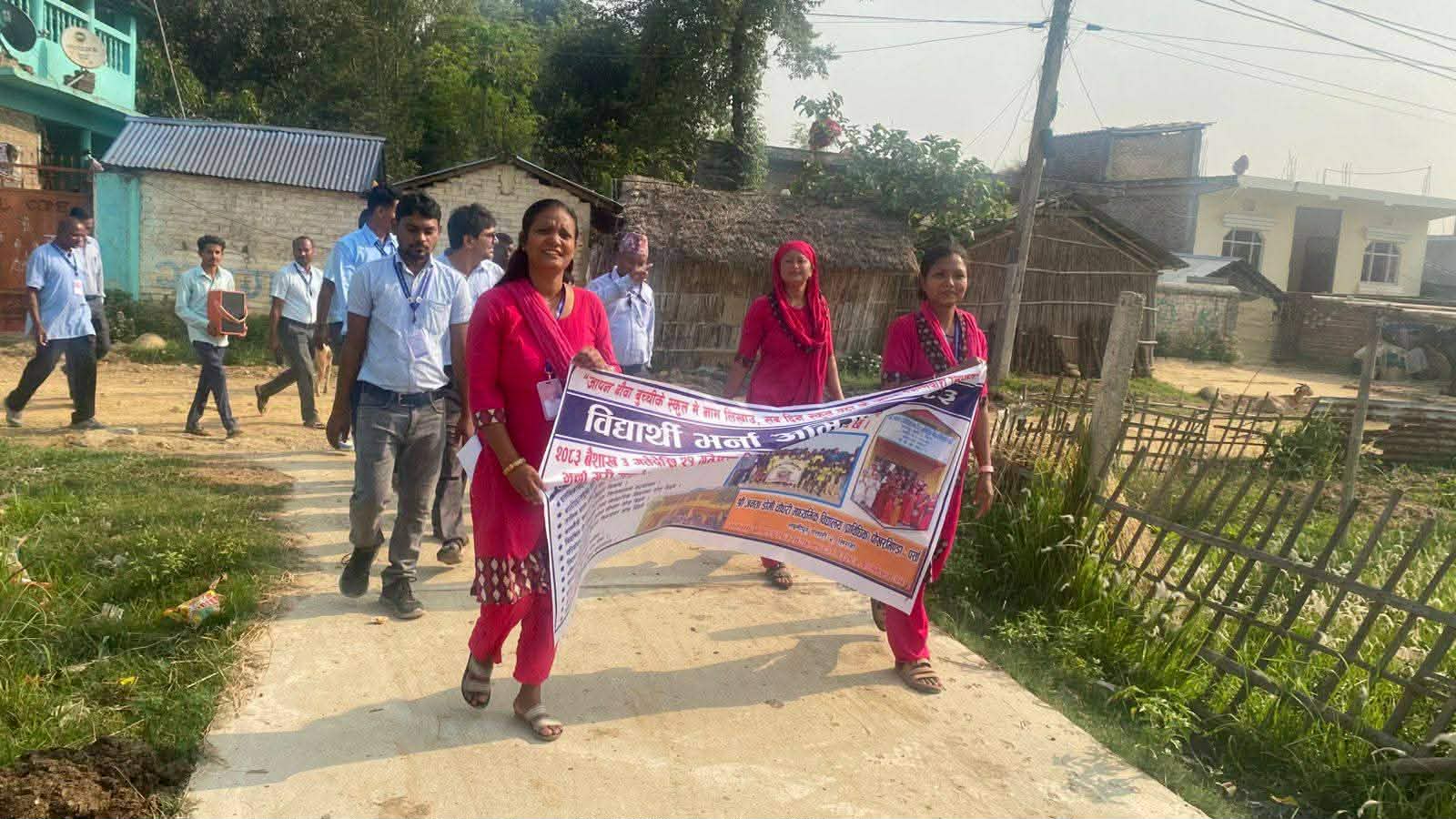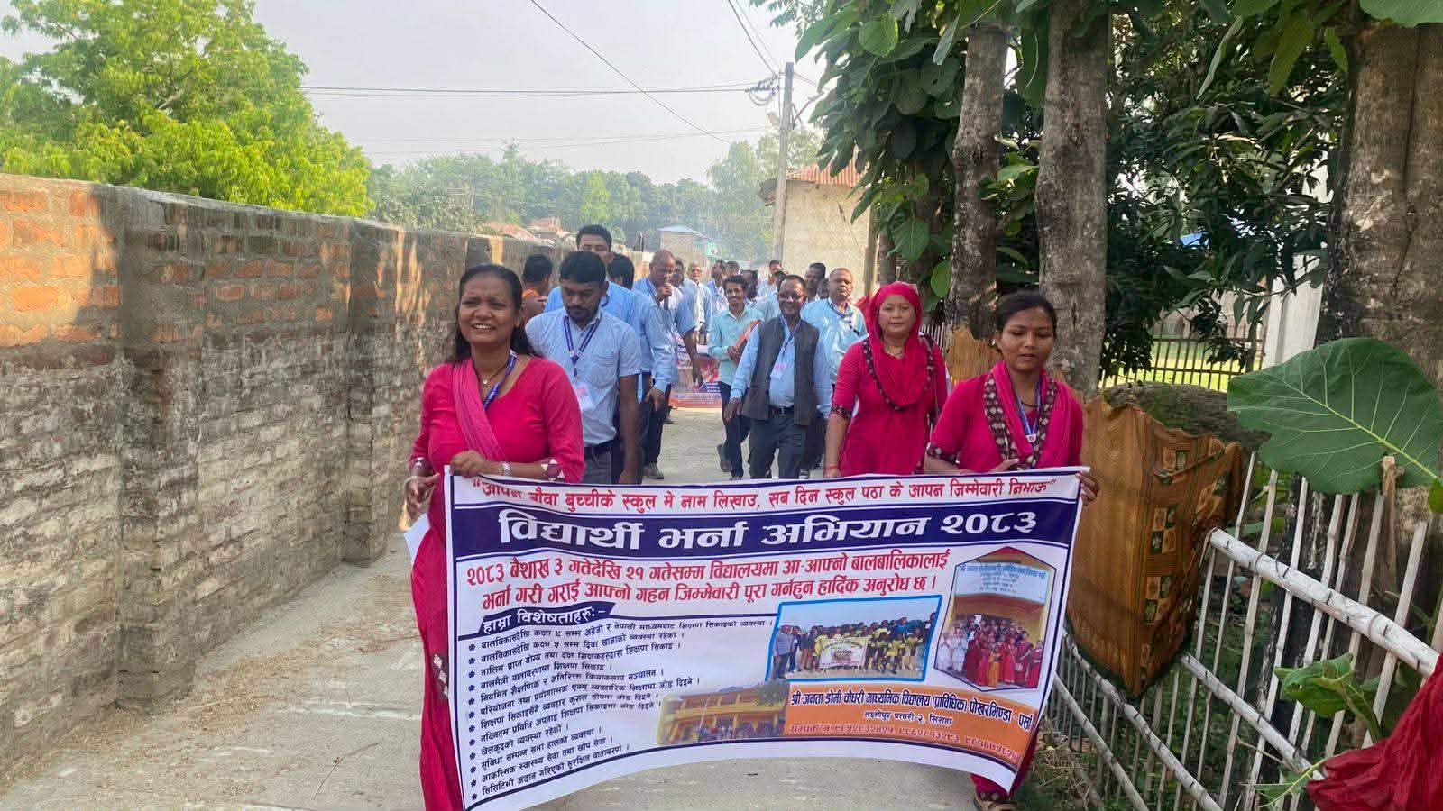 भर्ना अभियानको ब्यानर तथा प्लेकार्ड सहित विद्यालयबाट सुरु भएको र्याली स्कुलका दाता सूर्यनारायण चौधरीको टोल, कामत टोल, सरकारी टोल, मण्डल टोल, लक्ष्मीपुर पत्तारीका मेयर चतुरानन्द ठाकुरको घर, यादव टोल, सात नम्बर दुर्गा स्थान, लक्ष्मी चौक, तथा वडा कार्यालय हुँदै करिब ५ किलोमिटर लामो यात्रा पूरा गरी पुनः विद्यालयमा आएर समापन गरिएको थियो।